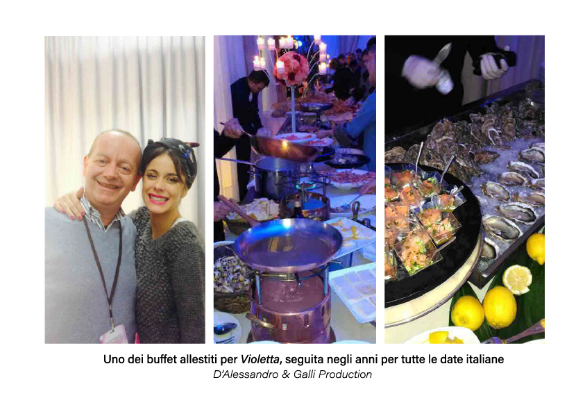 oggi portiamo la stessa esperienza nel mondo dei concerti, eventi live, spettacoli, cinema. Cuciniamo per gli artisti e per chi lavora dietro le quinte, con lo stesso impegno e la stessa attenzione che avremmo per la nostra famiglia.